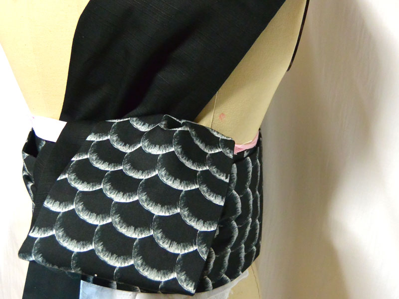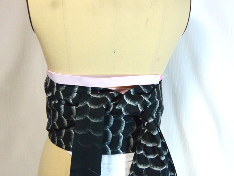 2016/07/29 Category : 未選択 帯の結び方について お問い合わせを多く頂きますので当サイトでよく使う結び方を写真で説明いたします。 私はその場その場で適当に結ぶだけのおおざっぱ結びなのであまり参考にならないかもしれません。 ・説明下手なのでかなり分かりづらいかと思います…申し訳ありません。 半巾帯の結び方を教えて下さる素晴らしいサイトが沢山ありますのでそちらもご覧下さい。 本当に説明下手で申し訳ないです…。 半巾帯の結び方 三重仮紐を使った半巾帯の結び方 1 手を短めにとり、手を上にしてひと結びします。手の上に三重仮紐を結びます。 (写真ではねじれてしまってますが^^; 奇麗に結んでくださいね) 2 たれを折り一番奥のゴムに通します。 3 さらにたれを折り、真ん中のゴムに通します。 3 たれ先を一番奥のゴムにプリント生地が表にくるように挟みます。 手先も同じように一番奥のゴムに挟みます。 挟む際に他の折ったパーツより奥へ押し込むように挟んでください。 4 全て倒して形を調整します。仮紐は胴と帯の間に落としこんで隠してください。